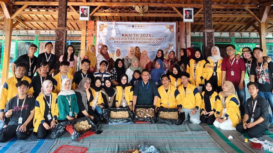 BOJONEGORO - Mahasiswa Kelompok 11 Kuliah Kerja Nyata Tematik Kolaboratif (KKN-TK) Universitas Bojonegoro (Unigoro) menyelenggarakan kegiatan sosialisasi bertajuk “Pengolahan Jamur Janggel Menjadi Olahan Sambal Pendamping Nasi Gulung” pada Senin (28/7/2025), bertempat di Balai Desa Wonocolo, Kecamatan Kedewan, Kabupaten Bojonegoro.