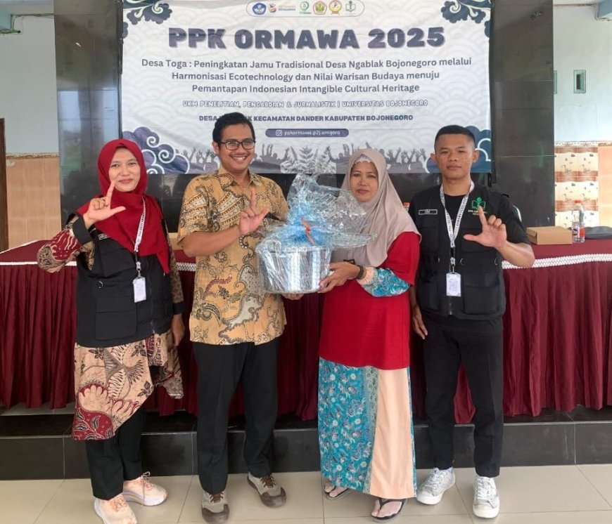 BOJONEGORO, lensanarasi.com – PPK Ormawa UKM P2J Universitas Bojonegoro sukses melaksanakan penutupan program kerja sekaligus menggelar pameran jamu tradisional di Balai Desa Ngablak, Kecamatan Dander, Kabupaten Bojonegoro, pada Selasa (9/9/2025). Acara ini dihadiri Kepala Biro Kemahasiswaan dan Kerjasama Universitas Bojonegoro, dosen pembina, serta ibu-ibu Paguyuban Jamu Ngablak.