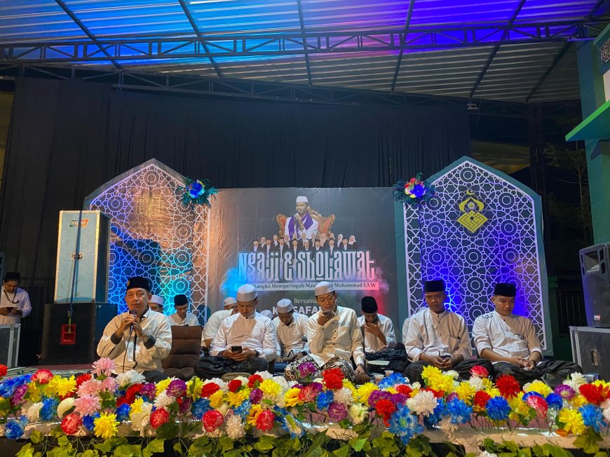Dalam acara tersebut K.H Safarun memberikan ceramah nya yang mengajak semua kalangan harus senantiasa mengingat kebesaran Nabi besar Muhammad SAW